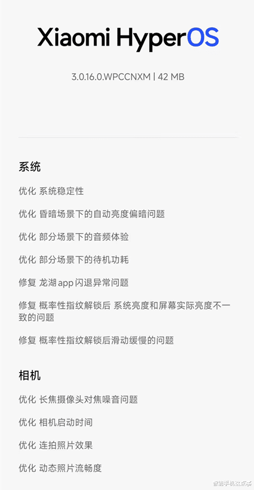 比如小米17 Pro Max手机现已获得澎湃OS 3.0.16更新,主要优化多项妙享背屏体验、修复稳定性问题,同时优化系统稳定性、长焦镜头对焦噪音问题。