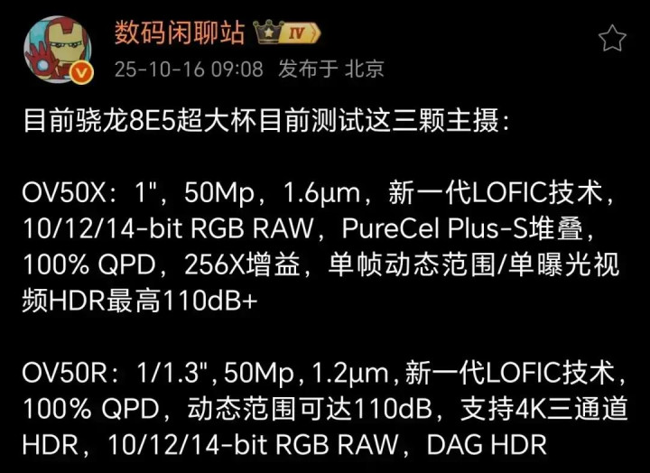 旗舰机型刚一开放预约,网络已经沸腾。要知道,高端影像领域一直被那些老牌镜头厂商把控,能与索尼、三星抗衡的国产企业并不多。但这一次,小米首发搭载豪威的OV50X一英寸大底,像素面积达到1.6μm,动态范围拉至16EV,同级别没有第二家能做到这样的配置。